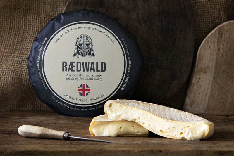 Rædwald (pronounced Redwold) is our Suffolk take on a traditional French Reblochon. It has the crunchy, toothsome rind and smooth oozing paste of a classic Reblochon, but the flavours are a deeply Suffolk experience. This is a cheese to be eaten sat on a log by a campfire, in a Suffolk woodland. It has flavours of briny sea air, smokey bacon, fresh hazelnuts, mushrooms and mossy bark.